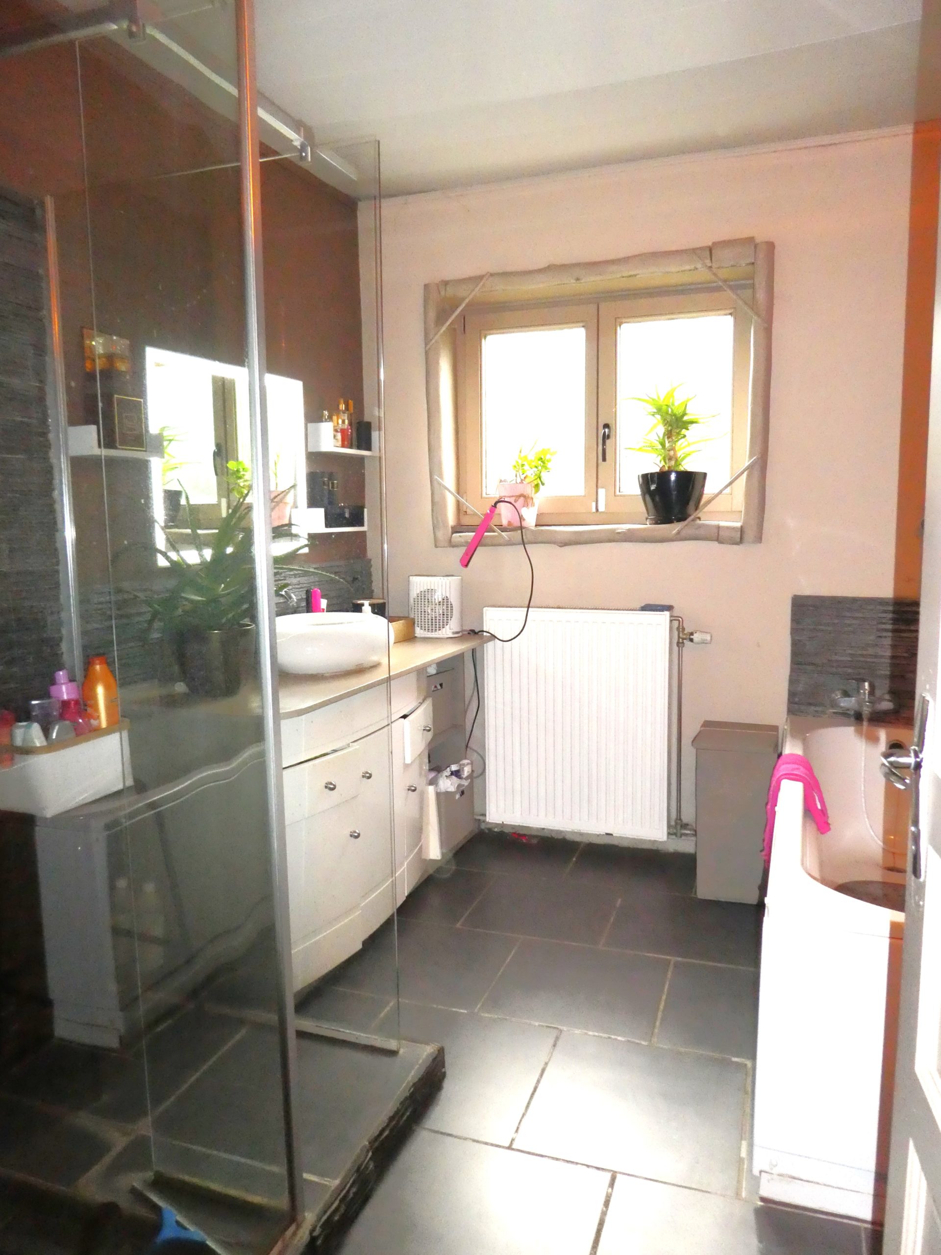 Belle villa avec hangar (60m²), 2 passages latéraux. Gros potentiel, jardin clôturé, véranda, 3 chambres, air-conditionné, quartier résidentiel. Avec facilités (écoles, grands axes, magasins,…)